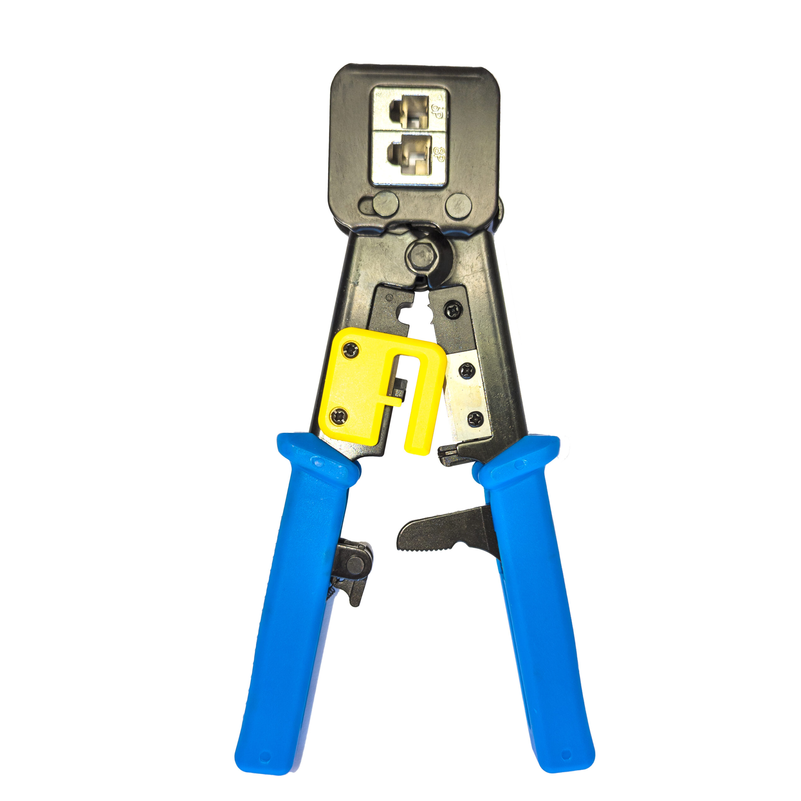 RJ45 Crimping Tool. Ideal for Cat5e and Cat6 cables, this tool cuts, strips, and crimps with precision. Its durable hardened steel construction and comfortable soft-grip handle.
